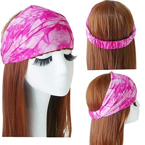Unique Design of Wide Elastic Headband for Women: Package includes 8 pieces different colors. Soft stretchable bandana print headband with elastic fashion Tie Dye design.