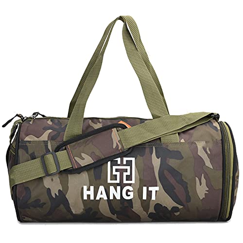 HANG IT Grab the best offer of the gym duffle bag from the house of HANG IT. It is made with High Quality Polyester fabric with 1 main compartments, Right side half pocket and 1 shoe compartment. It is ideal for gym freak guys n girls which have huge space for keeping your Gym accessories & Stuff. MADE IN INDIA