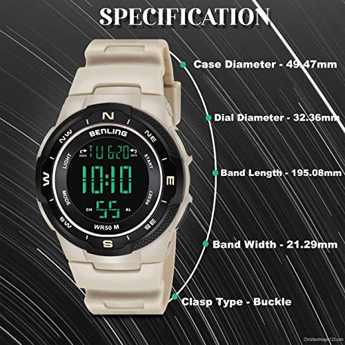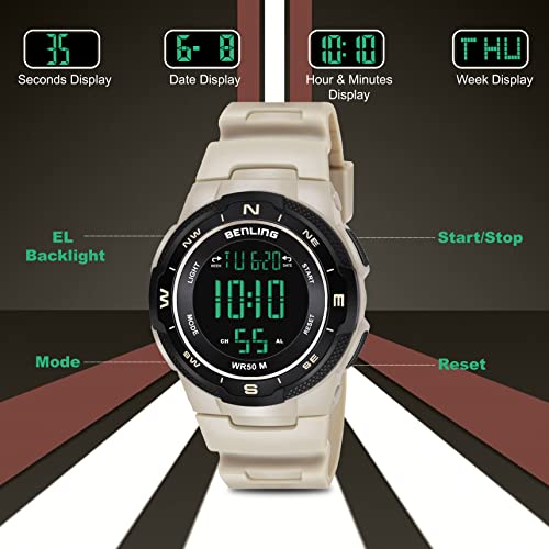 Benling Men’s Sports Digital Watch, Outdoor Water Resistance Wrist Watch Multifunction Large Face Watch for Men