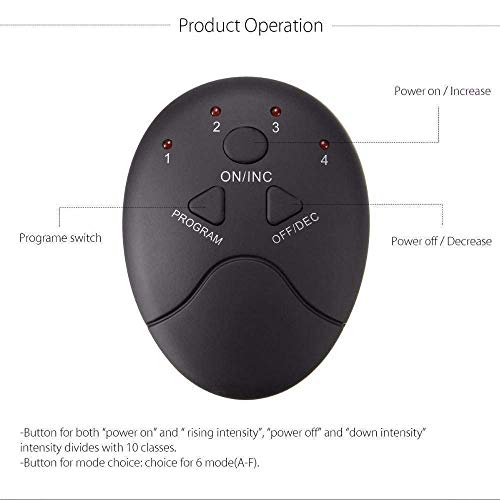 Usable At: Reading Doing House Work At Work Resting Watching Tv Commuting Keys: Straight and tighten key Function key ( 6 Modes ) Description: Quick results and it will be feeling compact for first use. Neglect neither exercise nor entertainment. The design of wireless remote control, portable and delicate. Specification: 6 simulation modes, 10 grades intensity to matches your day life requirement. One to one guiding and explaining the questions. Details For Men & Women EMS Abdominal, Arm and Leg Abdominal Muscle Toning Exercise Device. Description: 6 simulation modes, 10 grades intensity to match your day life requirements. It will get off power Suggestions: You can use ABS stimulator gain tighter and stronger muscles and perfect figure after consecutive use of this product for about 20 minutes per day.