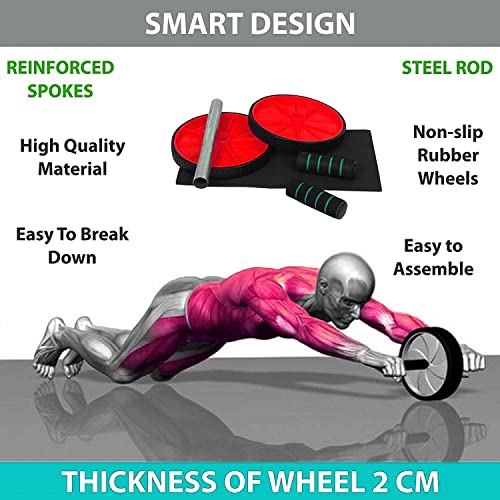 ULTIMATE ABDOMINAL EXERCISE EQUIPMENT: Dual AB Wheel is the home fitness equipment that can exercise your upper body, and is crafted to build your ABS, back, arms and shoulder muscles. The powerful rolling exercises can help reduce belly fat and carve perfect ABS. It gives you a total body workout, which is great for achieving peak fitness levels, from beginners to advanced trainers, men and women