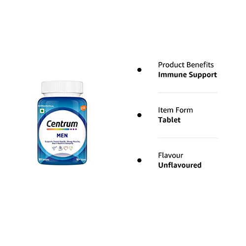 OPTIMUM MUSCLE PERFORMANCE & STRONGE BONES: Centrum Men, Multivitamin and Multimineral supplement has Calcium, Vitamin D3 and Magnesium that helps to build bones, supports strong bone health, and ensures optimum Muscle Performance. Consume 1 tablet daily or as prescribed by your healthcare professional to avail its multiple benefits