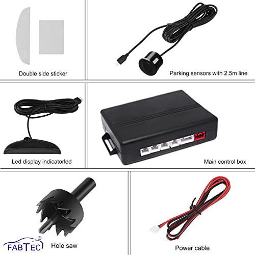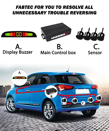 Fabtec Car Reverse Parking Sensor with LED Display, Buzzer and Ultrasonic Reverse Parking Auto Radar Detectors (Black)