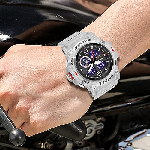 【DUAL DISPLAY WATCH】: This digital analog dual display waterproof (50m) men’s watch is designed for those who pursue an active lifestyle and can withstand all weather conditions for long, trouble-free operation. Multifunctional and convenient timing, fashionable color design, specially designed for various outdoor adventure sports. Stylish and sporty dial design, military uniform appearance, all functions provide a good wearing experience.
