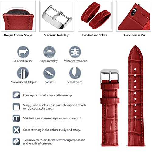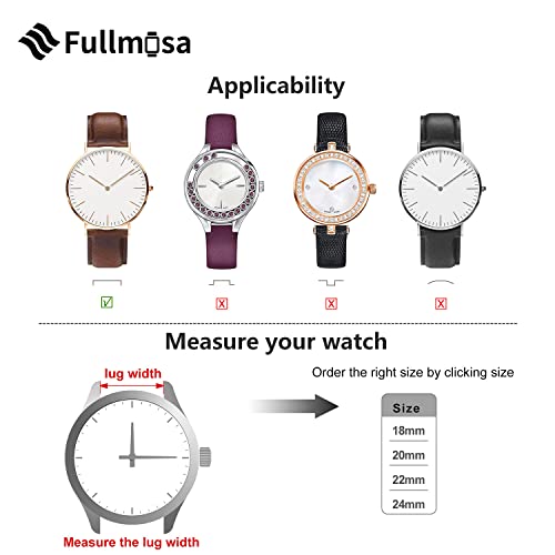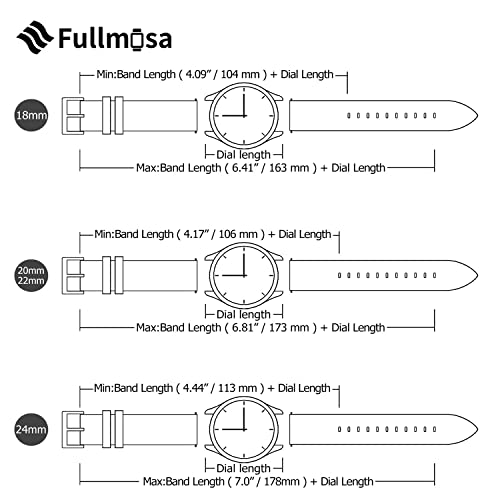 Sizing: Designed to fit almost any wrist. The 22mm watch bands are 3.15″ x 4.72″ (7.87″ total length).11 (22mm) precision cut eyelets allow for individualized adjustment to achieve the perfect fit. Two cross-stitched collars allow the ban to be secured. Refined, Durable, and Comfortable all in one.