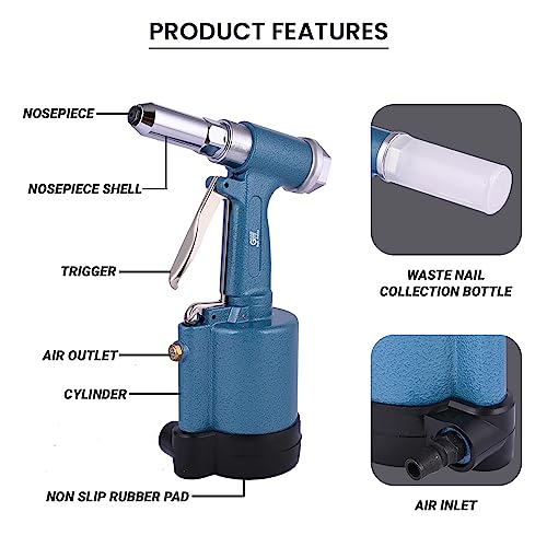 GIGAWATTS W500 Air Riveter 6.4mm Pop Rivet Gun Fast Hitting Professional Air Powered Riveting Tool for Metal Furniture Automotive Home Workshop