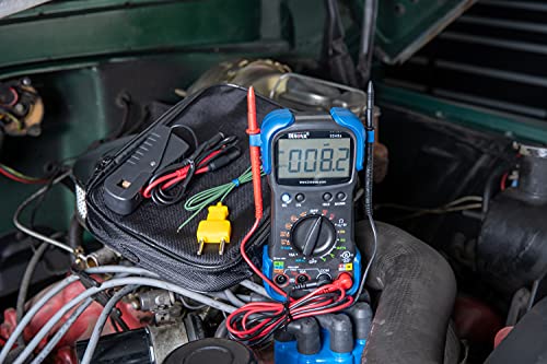 The Innova 3340 Auto-Ranging Multimeter features a temperature probe to retrieve and display temperatures in both Celsius and Fahrenheit, vehicle RPM (including coil on plug vehicles) readings with the included inductive pickup, automatic zero adjustments and reverse polarity protection. The 3340 is great for testing alternator diodes, duty cycle, solenoids, breaker points, wiring, switches, and more.