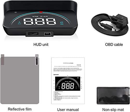 【EASY TO USE】: The In-vehicle Smart Hud Display Features Hassle-free Plug-and-play Operation. Simply Mount The Unit Near The Dashboard. It Is Powered Via The Included Cigarette Lighter USB Cable. Automatically Synchronizes Power On And Off With Engine Ignition. Can Be Used On All Cars, Vehicles And Trucks On The Market.