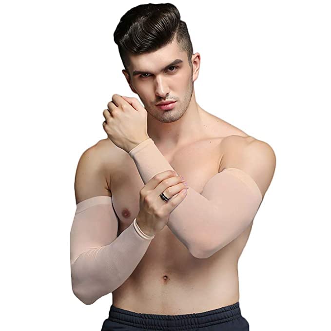 The stretchy nylon-spandex fabric stretches to over 4X it’s length, so whether you’ve got arms like Arnie or a marathon runner, these are great as arm sleeves for men, and women or compression sleeves for all arm shapes and sizes.