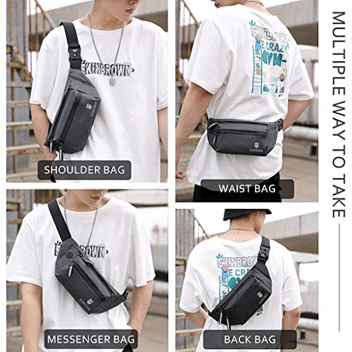 Large Waterproof Sling Backpack Chest Bag Waist Bags Fanny Pack Cross Body Travel Bag BumBag Men Women Fanny Pack for Hiking Travel Camping Running Sports Outdoors with Adjustable Strap (Grey)