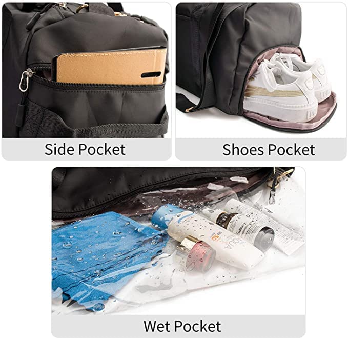 【Separate Compartment For Shoe, Dry & Wet Clothes】 Dry wet separate compartment for your shoes, swimsuits, wet clothes and wet towels. and you can organize your belongings or gym accessories in the large main pockets and others.