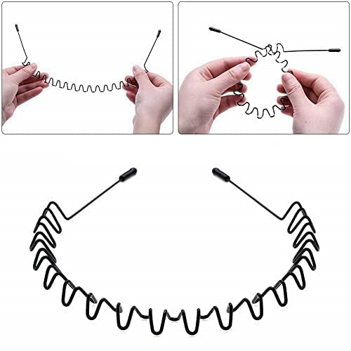 Metal Hair Bands for Men Women’s Headbands, Unisex Black Wavy Spring Sports Headband for Men’s Hair Band Hoop Clips Women Accessories Simple Elastic Non Slip Wide Headwear Band Outdoors