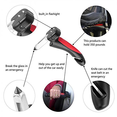 Get in and out of your car with ease! the non-slip grip car cane securely hooks directly into the door latch of your car allowing you to get a steady grip when you need it.Lightweight, strong and durable Design can withstand weight of up to 350Llbs (160kg)Built in super-bring LED flashlight assists when there is less daylight and can Last 100,000 hours (uses 2 x 3V CR3032 batteries – Included).Portable grip can double up as an “accident emergency tool”. it has a built-in seat belt cutter and hammer feature to break glass in case of emergencies.Please check your CAR of car before ordering for correct size; select “slim size” car cane if your CAR of car is listed on the table in images.Get in and out of your car with ease! the non-slip grip car cane securely hooks directly into the door latch of your car allowing you to get a steady grip when you need it.Lightweight, strong and durable Design can withstand weight of up to 350Llbs (160kg)
