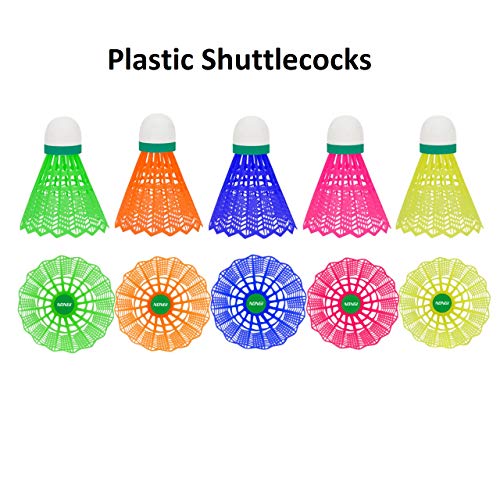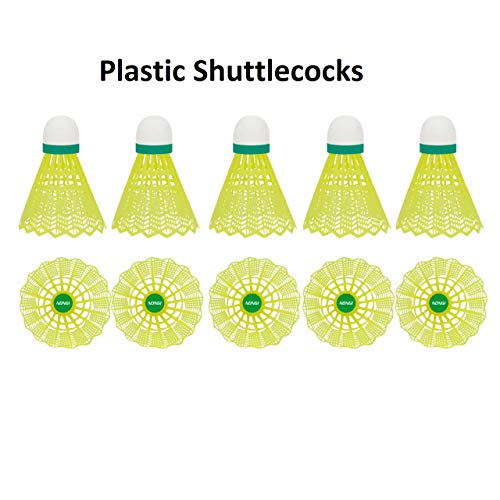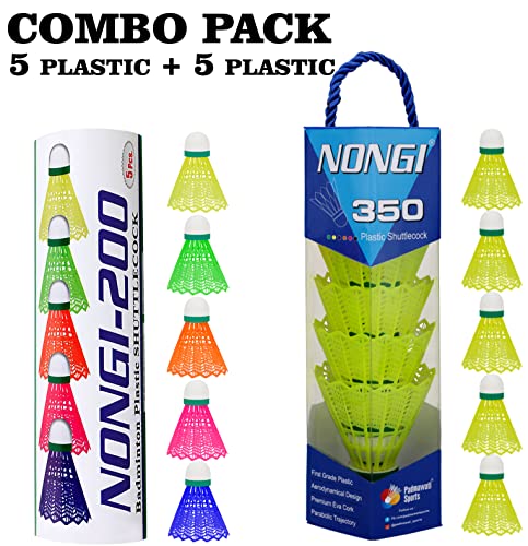 The Pack contains 2 shuttle boxes ( NONGI 350 – 5 pcs Yellow Plastic Shuttlecock , NONGI 200 – 5 pcs Multicolor Plastic Shuttlecock )