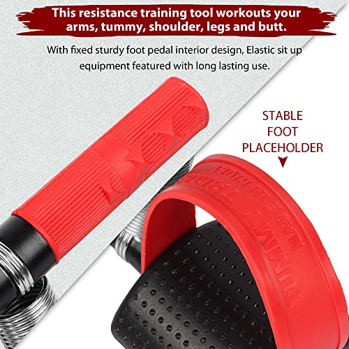 Comfortable to Use This Tummy trimmer has been fitted with a comfortable handle with rubber coating to offer a firm grip. A pair of comfortable pedals is provided for your feet and a band helps keep them in place when you exercise. Simply place it on the floor hold the handles and use it like a rowing machine. Effective for trimming and toning tummy arms legs hips and thighs Feature Contoured food pedals Steel coil pull-up bar Portable & lightweight.