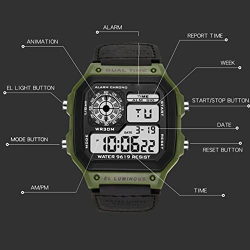 PROFESSIONAL DESIGN: Sport watch is made of ABS plastic case, canvas strap, stainless steel back and buckle, designed for all kinds of outdoor sports, and resistant to wear and tear.