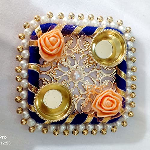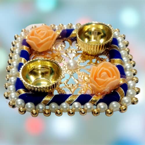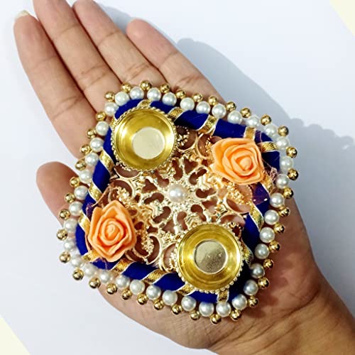 Dimensions:10 x 10 cm [4 Inch]- Material -Wooden & Metel Base.Size:Small Size. Care Tips : Wipe with dry cloth, don’t clean it with chemical or acids This ALL IN ONE pooja thali can be the beautiful addition to your Home and Temple One of the best Gifting option for any occasion like Gift for Wedding, Corporate Gift, Kitty Party, House Warming party , Diwali , Makar Sankranti , Rakhi , Pongal , Lohri and other festivals . Very yet elegant choice Two Kumkum Holders are inbuilt In this Puja Thali itself where in you can very easily arrange Haldi , Kumkum , Akshata or other things according to the functions.