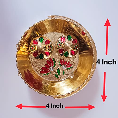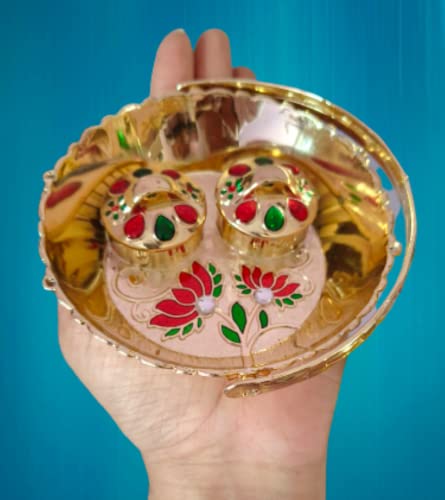 Dimensions:10 x 10 cm [4 Inch]- Material -Acrylic Care Tips : Wipe with dry cloth, don’t clean it with chemical or acids This ALL IN ONE pooja thali can be the beautiful addition to your Home and Temple One of the best Gifting option for any occasion like Gift for Wedding, Corporate Gift, Kitty Party, House Warming party , Diwali , Makar Sankranti , Rakhi , Pongal , Lohri and other festivals . Very yet elegant choice Two Kumkum Holders are inbuilt In this Puja Thali itself where in you can very easily arrange Haldi , Kumkum , Akshata or other things according to the functions.