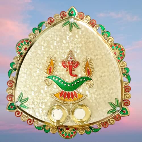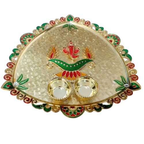 Two Haldi Kumkum Holders are inbuilt In this Puja Thali itself where in you can very easily arrange Haldi , Kumkum , Akshata or other things according to the functions.