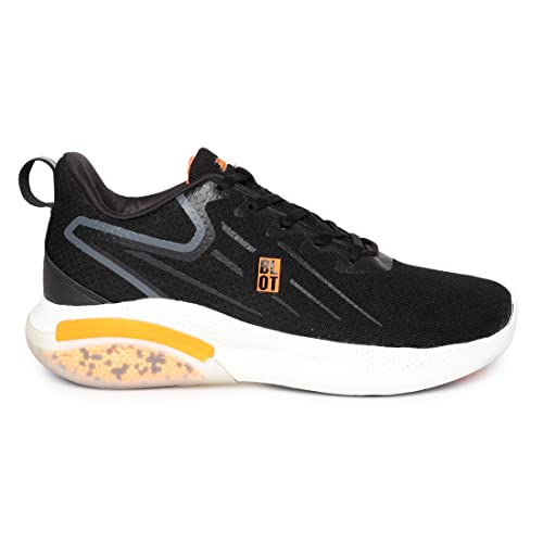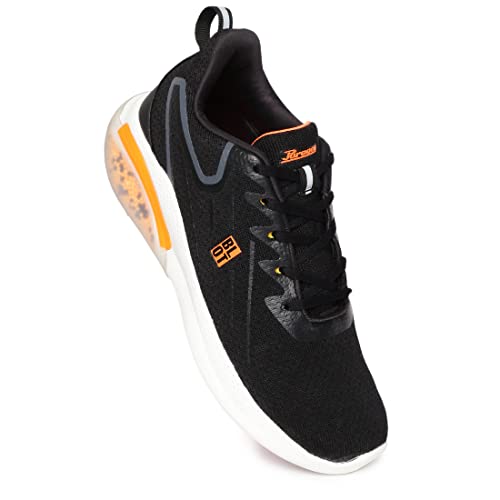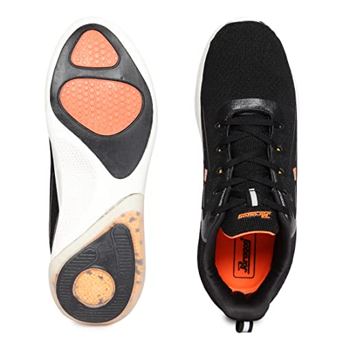 Sporty and stylish, these black casual shoes for men are made to support the active lifestyle of the modern man. The modish shoes from Paragon Blot feature a sole with fine details in a vibrant hue of orange. The plush sole and the sturdy build make this pair a must-have for training, gymming and making a statement that is anything but ordinary.