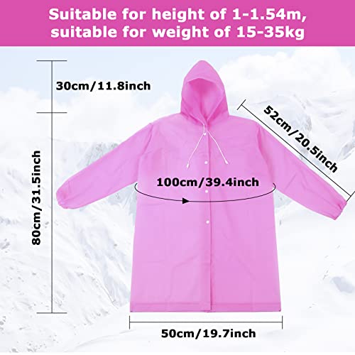 12 Pieces EVA Kids Poncho Reusable Rain Coat Waterproof Kids Raincoat for 5-12 Years Old Boys and Girls for Camping Hiking Traveling Backpacking, 6 Colors