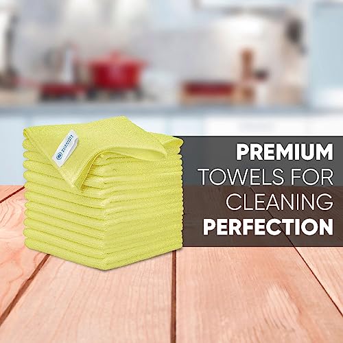 12″ x 12″ Buff Pro Multi-Surface Microfiber Cleaning Cloths | Yellow – 12 Pack | Premium Microfiber Towels for Cleaning Glass, Kitchens, Bathrooms, Automotive