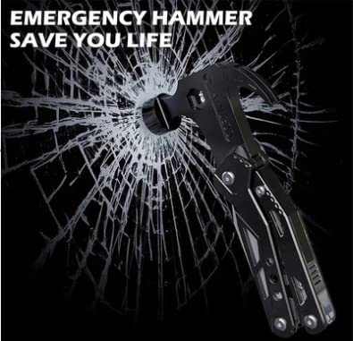 【High Quality and Safety Tool】This multitool is made of Stainless steel and with durable black oxidation for the main part. It’s strong and durable that can cut, pry, twist the screw, open fire hydrant, saw wood, shatter the glass curtain wall easily, and let you far away from the anxious about broken tools in urgent use.