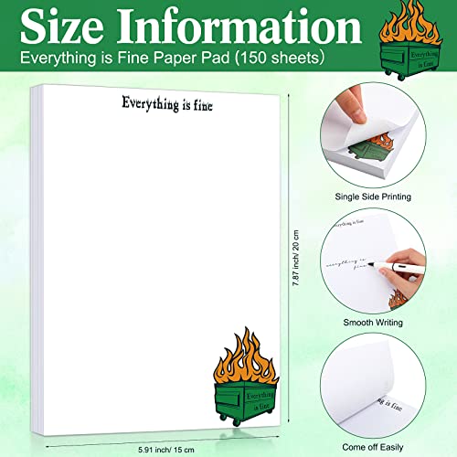 150 Sheets Everything Is Fine Paper Pad Funny Notepads for Coworkers Gifts Dumpster Fire Memo Pads to Do List Notepad Writing Paper Note Pads for Office Coworkers Stationery Supplies 5.9 x 7.9 Inch