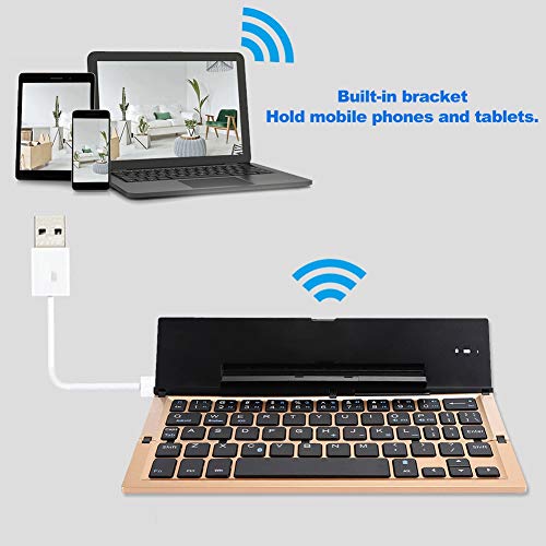 168 Mini Keyboard, Practical PC Accessory Computer Parts Foldable Square Gold Game Office Keyboard with Stand for Bluetooth