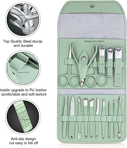 16in1 Manicure Pedicure Kit For Women & Men with Nail Cutter,Scissors,Tweezers,Knife,Ear Pick Eyebrow, Toe Nail Scissors Utility Tools with Leather Travel Case,Professional Grooming Kit Nail Care Tool