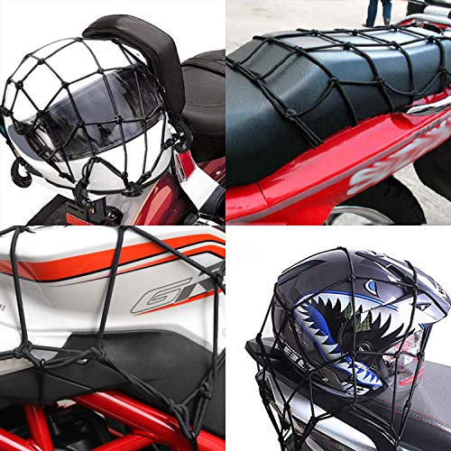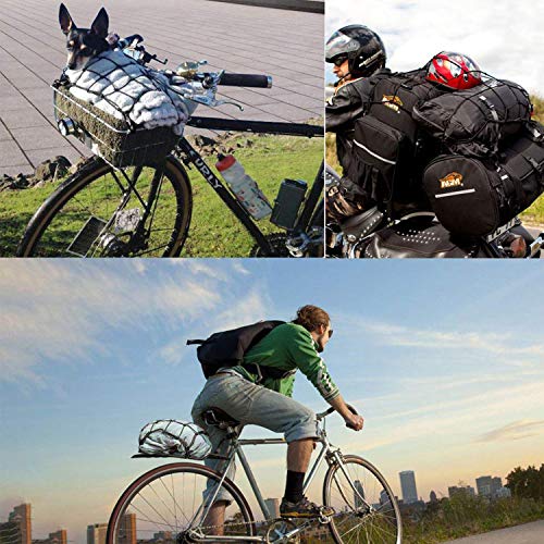 【Suitable for all Occasions】Sized of 15.7″x 15.7″ luggage netting,stretches up to 30″x30″,you can expand the transport space and load more items with our cargo net!An Ideal for motorcycle rear seat,bicycle rear set,bike basket,fuel tank,fixed helmet,paddle board,snowmobile for holding cargo,luggage,basket,helmet and so on!