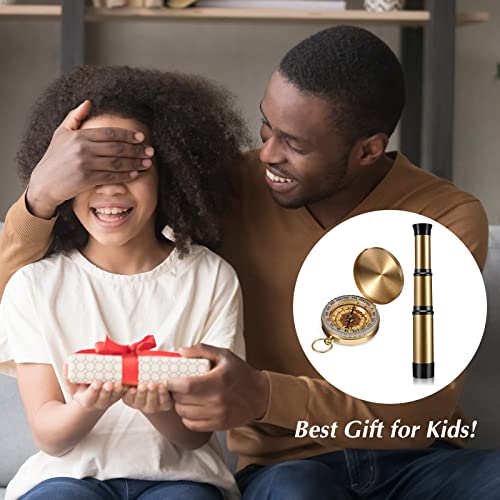 Vintage style: the collapsible telescope is designed with a solid material, with high grade gold plated metal case and polished mirror, not only is it vintage, but it’s practical, coupled with a classic compass party favor, nice for outdoor adventures, hiking, camping, hunting, birding or sailing
