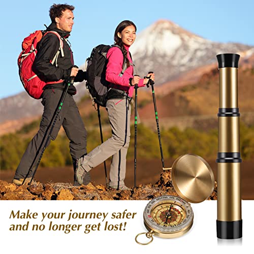 Ideal traveling partner: the pocket telescope is foldable, and the compass gear comes with a metal ring that can be attached to a key chain or necklace, designed for easy storage and carrying, good helpers on your journey