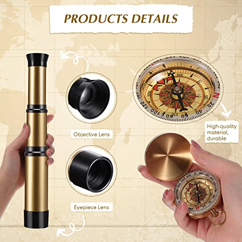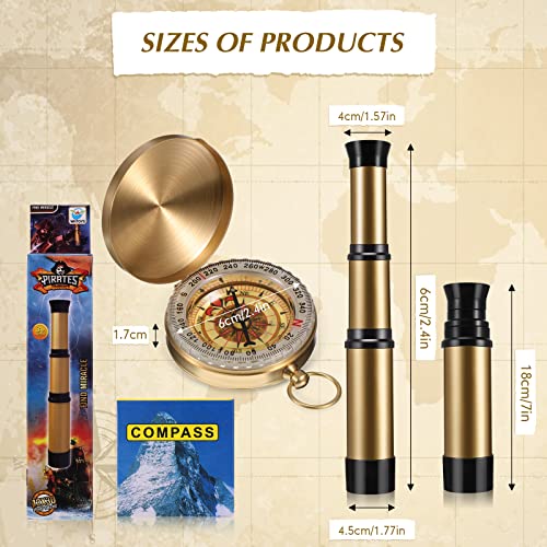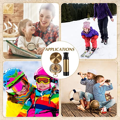 2 Pieces Pirate Spyglass Telescope with Survival Gear Compass Pocket Retro Spyglass Portable Collapsible Handheld Telescope for Children Pirate Cosplay Party Favors Camping Boating