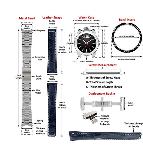 Watch band taper width: Size of watch band x Size of Buckle: 20mm x 20mm, 22mm X 22mm, 24mm X 24mm