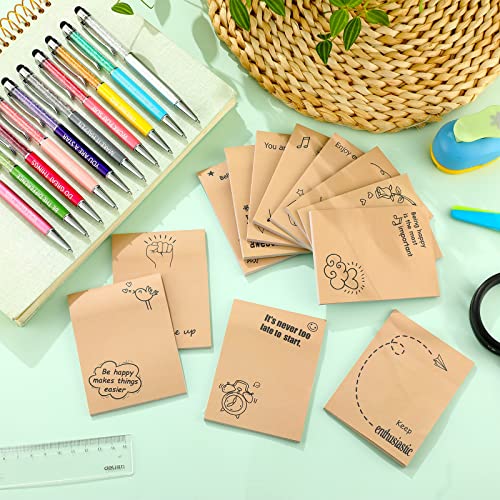 24 Pcs Inspirational Sticky Notes Motivational Ballpoint Pens Inspirational Quotes Positive 3 x 4 Inch Notepads Pen Gifts for Teacher Nurse Worker Office Supplies