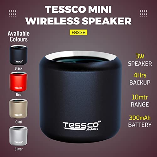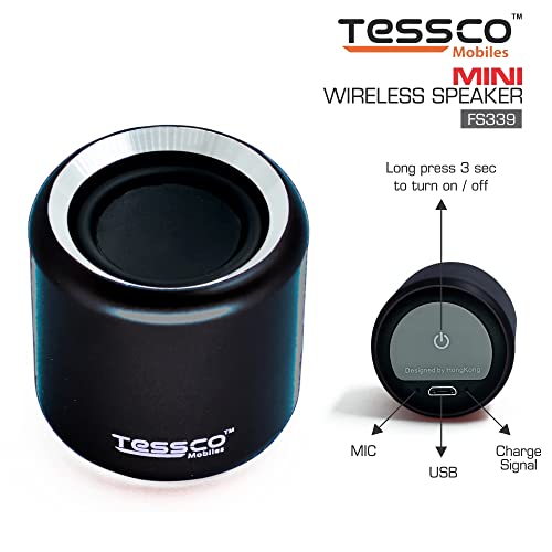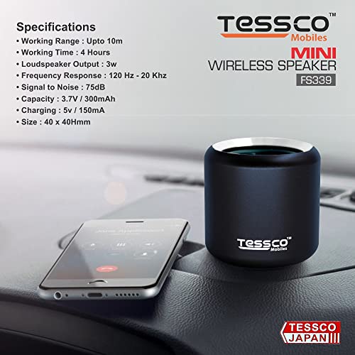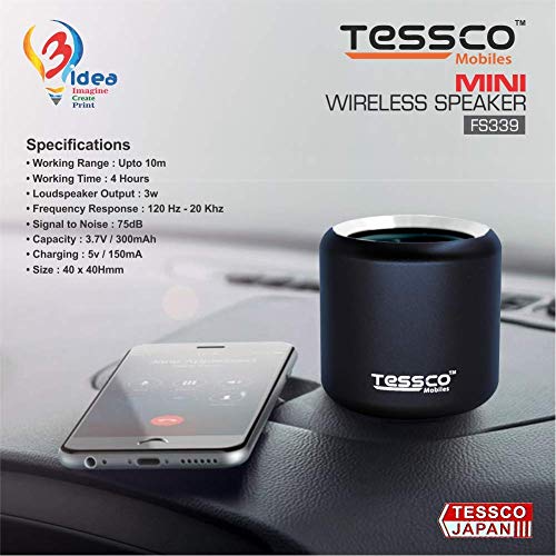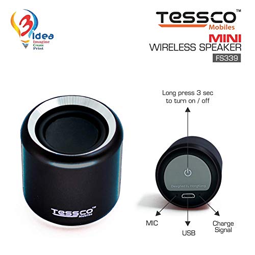 3 idea Imagine Create Print Tessco FS-339 Mini Wireless Bluetooth Speaker | IPX5 Waterproof | DSP Technology | Stereo Surround Sound | Portable Speaker Compatible with Phone, Tablet, TV (Black)