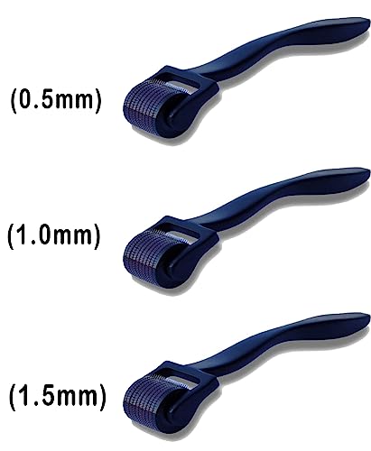 3 Pack of 0.5, 1.0 & 1.5mm Derma Roller Microneedle Roller For Face Microneedling Beard Growth Kit Hair Growth Beard Care Kit For Women and Men Skin Care Micro Needle Roller Scalp Roller -3 Pcs
