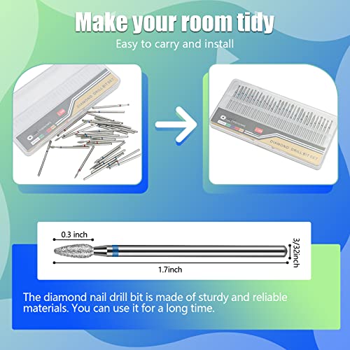 30Pcs Diamond Nail Drill Bits Set, Rolokit 3/32 Inch Cuticle Bit for Nail Drill, Puntas para Drill Nails Manicure Pedicure Remover Tools for Acrylic Gel Nails, Salon Home Nail Care