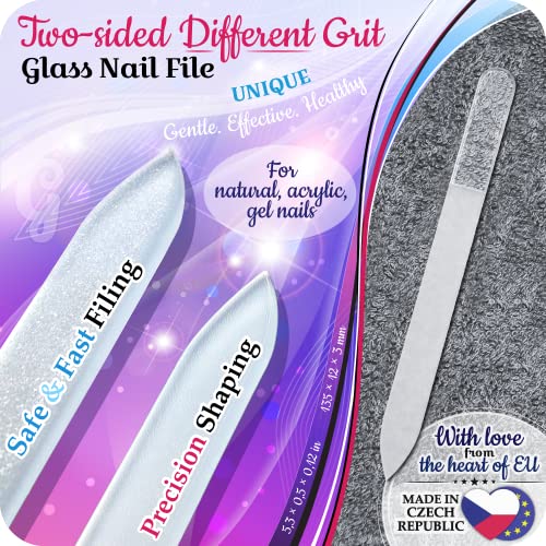 3D Genuine Czech Glass Nail File with Velvet Pouch – Etched Different Grit Surface, Professional Nail Care, Manicure & Pedicure, EU Quality by Gladzy