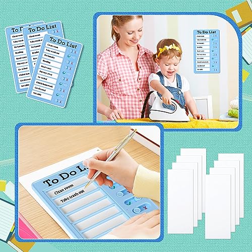 4 Pieces to Do List Checklis Boards Plastic RV Chore Chart Memo Boards Detachable Message Board Checklist Slider Schedule Planning Boards with 8 Cardstock for Check Items Accessories (Blue)
