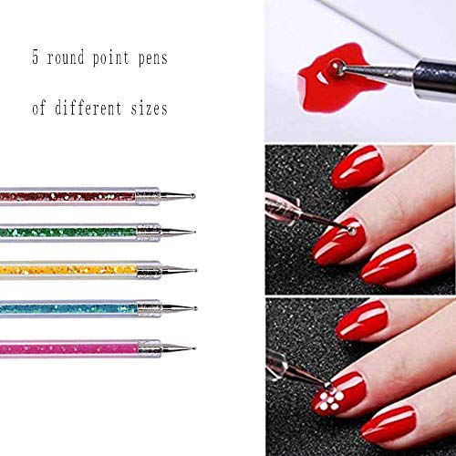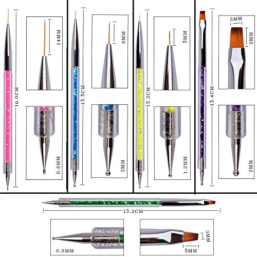 5 Pcs Nail Art Point Drill Drawing Brush Pen Manicure Care Tool Nail Brushes Nail Art Liner Brush Acrylic UV Gel 3D Glitter Liner Nail Polish Pen Sets Nail Dotting Tools Set for DIY Nail Art Designs