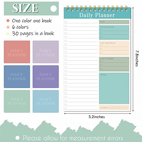 6 Pack to Do List Notepad Daily Planner Notepad to Do Notebook Daily to Do List Notebook Daily to Do Notepads for Adults and Kids Classroom Office Home Supplies, 30 Sheets/ Pack, 6 Colors