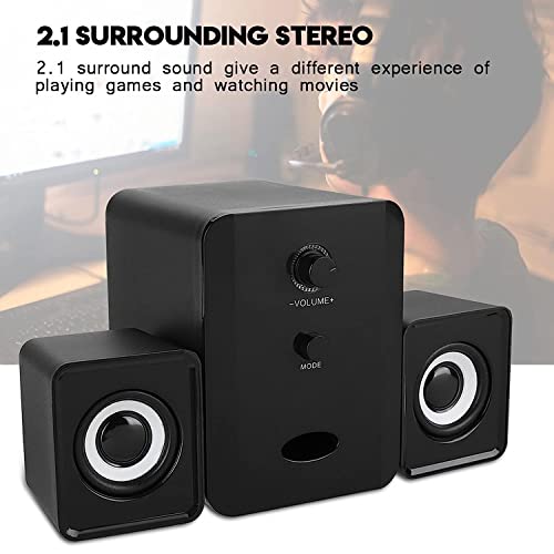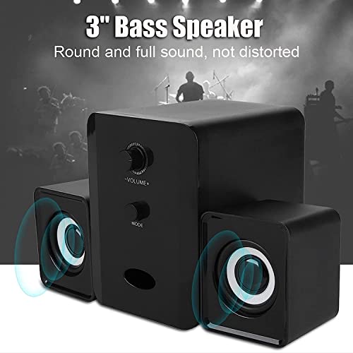 A K Homes -USB Speaker, Durable Stereo Rotation Button 20HZ-17KHZ Black USB Woofer Speaker for Gaming