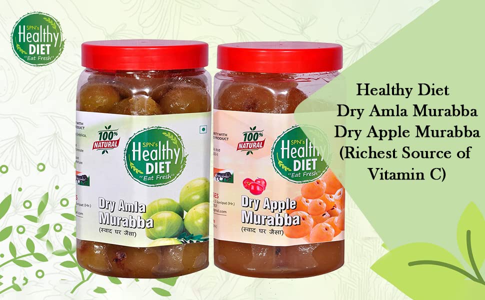A Well Known Quality Product by Healthy Diet स्वादिष्ट मुरब्बा Home Made, Herbal, Organic, Hygienic, Dry Amla Murabba Qty- 900gms+ Dry Apple Murabba Qty- 900gms