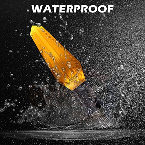 A4S Presents This flexible bicycle turn indicator easily fits UM All Bikes. It has a super bright LED, no heat, not long, the minimum power consumption can be ignored. – High luminous efficiency, penetrating power, energy saving, environmental protection. – Easy installation: (IMPORTANT) Instructions are not included. Professional installation recommended. Thank you for your understanding. Package: 4 pcs in 1 box. The color of the indicator case is black and the light color is amber.