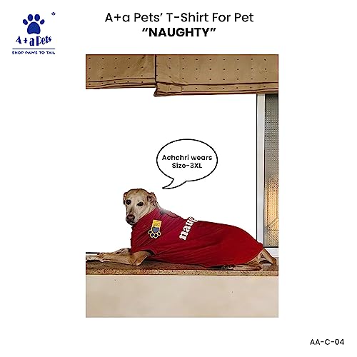 A+A Pets Graphic Printed Naughty Premium Tshirt | for Dog, Puppy, and Cat | Round Neck | Breathable Costumes Soft, Light Weight Apparel | 100% Cotton (XL, Red)