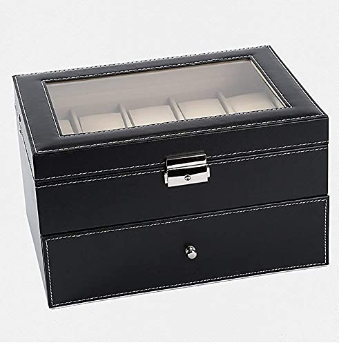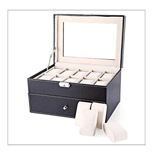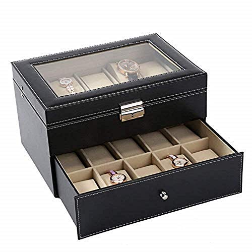 AADCART PU leather wrist watch box Watch Storage Case And Watch Organizer Display Collection Box With Transparent Glass For Men’s & Women’s Gift (20 Watch 2 Drawer Organizer)