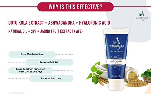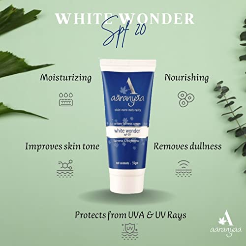Aaranyaa Fairness Cream White Wonder SPF 20 (55gm) Face Cream with Hyaluronic Acid & Vitamin C to Hydrate, Moisturize & Brighten Skin | For Sun Protection – Paraben Free