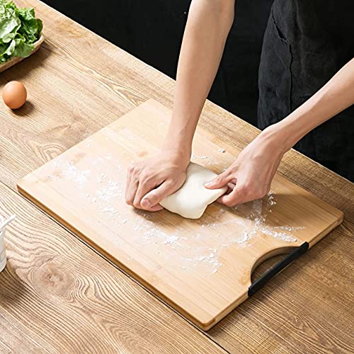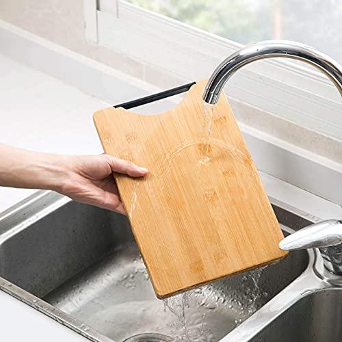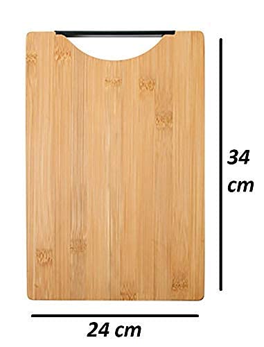 AB SALES Bamboo Chopping Board Black Aluminium Handle, Durable Double Sided Worktop, for Vegetables, Bread, Fruits, Brown, 34 * 24 cm (Rectangular)